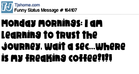 X says Monday mornings: I am learning to trust the journey, wait a sec...where is my freaking coffee?!?!