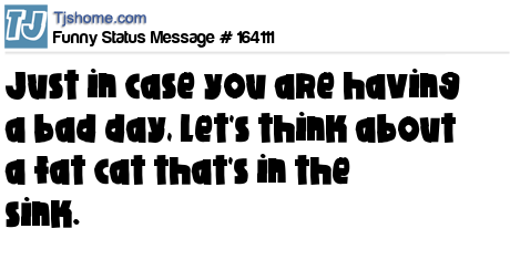 X says Just in case you are having a bad day, let's think about a fat cat that's in the sink.