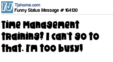 - # 183821 My boss wants to send me to a Time Management training class. Is he serious? I'm way too busy for that!