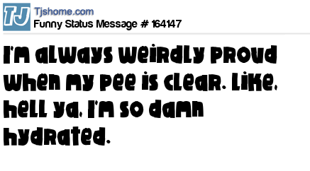 X says I'm always weirdly proud when my pee is clear. Like, hell ya, I'm so damn hydrated.
