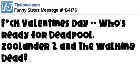 - # 164218 What People Care About In February: 99% -- Deadpool, 1% -- Valentines Day.