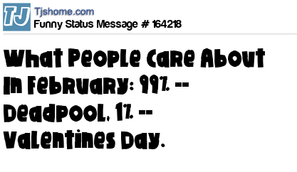 X says What People Care About In February: 99% -- Deadpool, 1% -- Valentines Day.