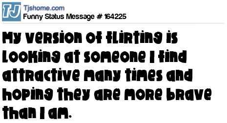 - # 149882 My version of flirting is looking at someone attractive multiple times while hoping they are more brave than I am.