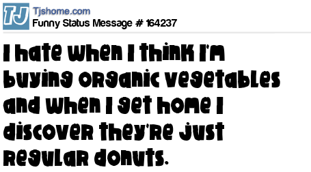 X says I hate when I think I'm buying organic vegetables and when I get home I discover they're just regular donuts.