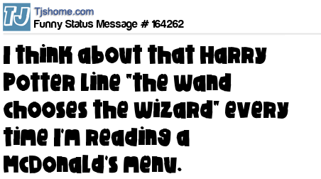 X says I think about that Harry Potter line "the wand chooses the wizard" every time I'm reading a McDonald's menu.