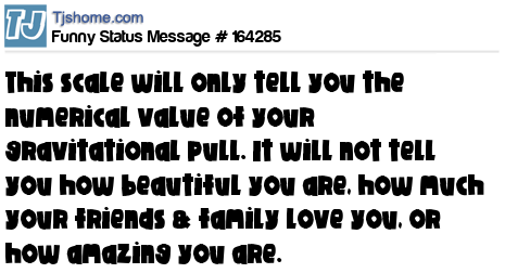X says This scale will only tell you the numerical value of your gravitational pull. It will not tell you how beautiful you are, how much your friends & family love you, or how amazing you are.