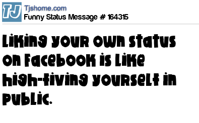 - # 157847 and, liking - you liked your own status by yourself- your own status is like high fiving yourself in public.
