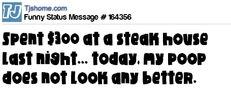 X says Spent $300 at a steak house last night... today, my poop does not look any better.