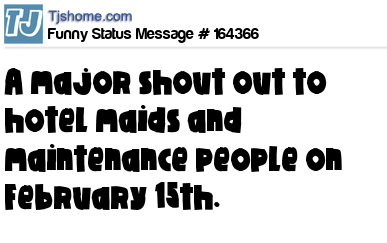 X says A major shout out to hotel maids and maintenance people on February 15th.
