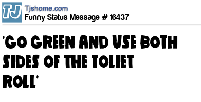 - # 95249 If you really want to go green, start using BOTH sides of your toilet paper.