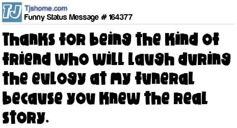 X says Thanks for being the kind of friend who will laugh during the eulogy at my funeral because you knew the real story.