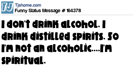 X says I don't drink alcohol. I drink distilled spirits. So I'm not an alcoholic....I'm spiritual.