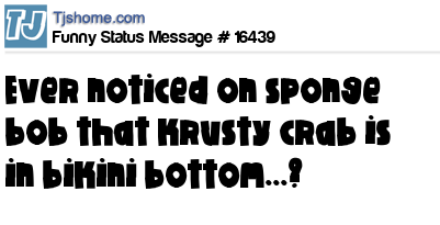 - # 102785 n't it funny that Mr. Krabs lives in Bikini Bottom? Coincidence? I think not!