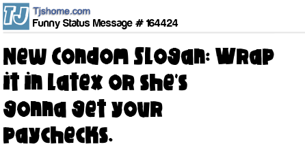 - # 104807 New condom slogan...."Wrap it in latex or give her your paychex."