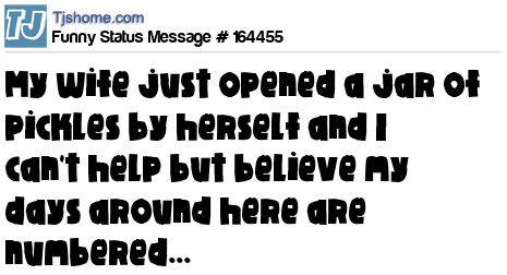 - # 174866 My wife just opened a jar of pickles by herself and I can't help but think that my days around here are numbered...