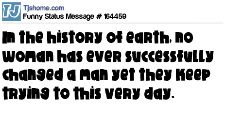 X says In the history of earth, no woman has ever successfully changed a man yet they keep trying to this very day.