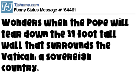 X wonders when the Pope will tear down the 39 foot tall wall that surrounds the Vatican; a sovereign country.