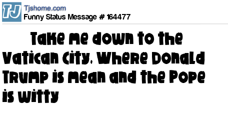 X says 🎶Take me down to the Vatican City, Where Donald Trump is mean and the Pope is witty🎶