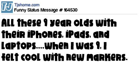 X says All these 9 year olds with their iPhones, iPads, and laptops....when I was 9, I felt cool with new markers.