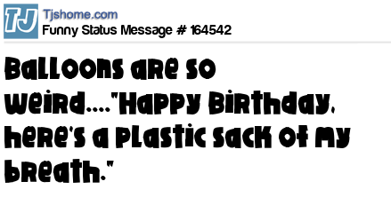 X says Balloons are so weird...."Happy Birthday, here's a plastic sack of my breath."