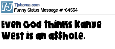 - # 134658 The KANYE went down to the very KANYE street to buy a new KANYE for only $KANYE dollars. “KANYE?” he asked..... Kanye West doing a Mad Lib