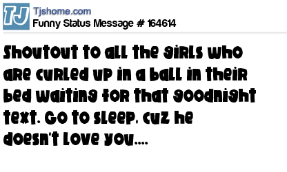 X says Shoutout to all the girls who are curled up in a ball in their bed waiting for that goodnight text. Go to sleep, cuz he doesn't love you....