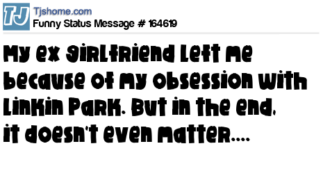 X says My ex girlfriend left me because of my obsession with Linkin Park. But in the end, it doesn't even matter....
