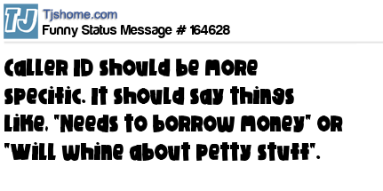 - # 125110 Caller ID should be more detailed~ "Wants Help Moving" "Going to Whine" "Will Ask to Borrow Money"