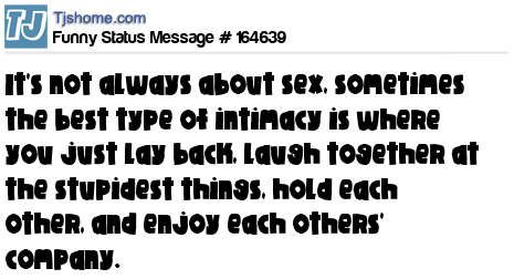 X says It's not always about sex, sometimes the best type of intimacy is where you just lay back, laugh together at the stupidest things, hold each other, and enjoy each others' company.