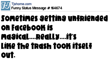- # 209411 Sometimes getting unfriended on Facebook is magical. It's like the trash took itself out.