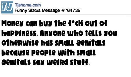 X says Money can buy the f*ck out of happiness. Anyone who tells you otherwise has small genitals because people with small genitals say weird stuff.