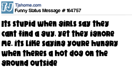 X says its stupid when girls say they cant find a guy, yet they ignore me. its like saying youre hungry when theres a hot dog on the ground outside