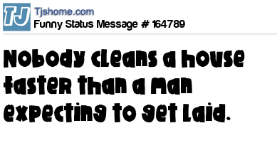 - # 111450 Nobody cleans a house faster than a guy expecting to get laid.