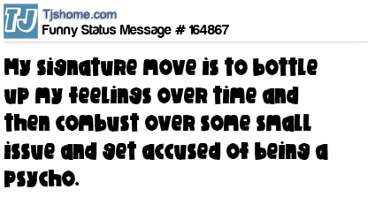 X says My signature move is to bottle up my feelings over time and then combust over some small issue and get accused of being a psycho.