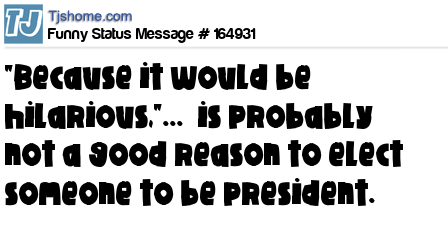 X says "Because it would be hilarious,"... is probably not a good reason to elect someone to be president.