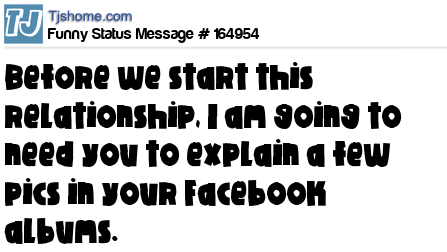 X says Before we start this relationship, I am going to need you to explain a few pics in your Facebook albums.