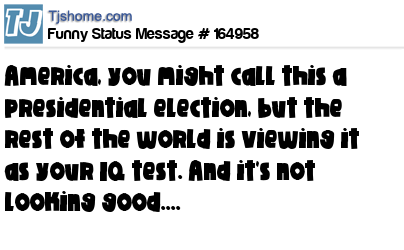 - # 165014 dear america, this years election is your IQ test. Right now it doesnt look good ... -the world