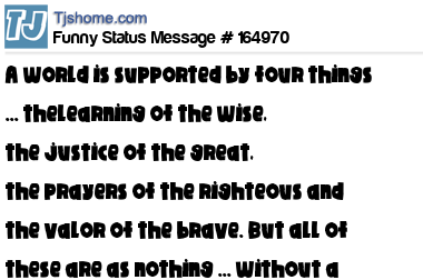 X says A world is supported by four things ... thelearning of the wise, the justice of the great, the prayers of the righteous and the valor of the brave. But all of these are as nothing ... without a ruler who knows the art of ruling.