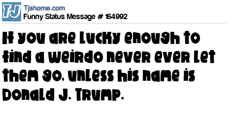 X says If you are lucky enough to find a weirdo never ever let them go, unless his name is Donald J. Trump.