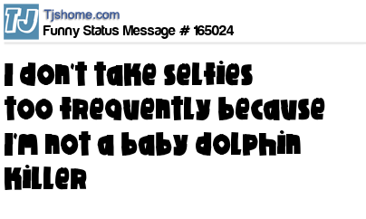 X says I don't take selfies too frequently because I'm not a baby dolphin killer