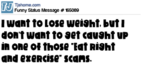- # 203526 I want to lose weight, but I don`t want to get caught up in one of those "Eat right and exercise" scams.