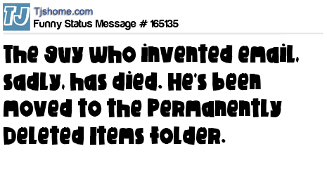 - # 165115 The guy who invented email, sadly, has died. ---actually he died a few days ago, but they just found him in somebody's spam folder.