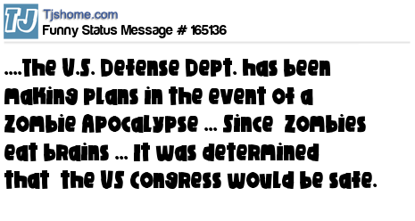 X ....The U.S. Defense Dept. has been making plans in the event of a Zombie Apocalypse ... Since Zombies eat brains ... It was determined that the US Congress would be safe.