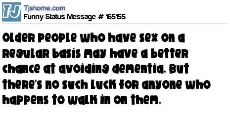 X says Older people who have sex on a regular basis may have a better chance at avoiding dementia. But there's no such luck for anyone who happens to walk in on them.