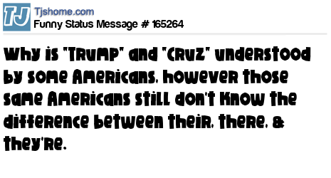 X says Why is "Trump" and "Cruz" understood by some Americans, however those same Americans still don't know the difference between their, there, & they're.
