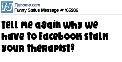X says Tell me again why we have to Facebook stalk your therapist?