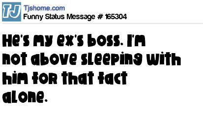 X says He's my ex's boss. I'm not above sleeping with him for that fact alone.
