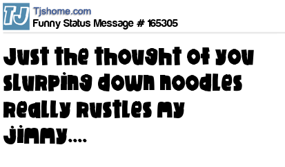 X says Just the thought of you slurping down noodles really rustles my jimmy....