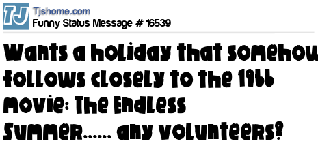 X wants a holiday that somehow follows closely to the 1966 movie: The Endless Summer...... any volunteers?