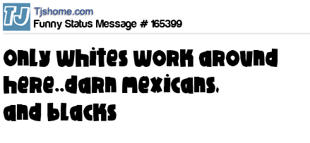 X says only whites work around here..darn mexicans, and blacks